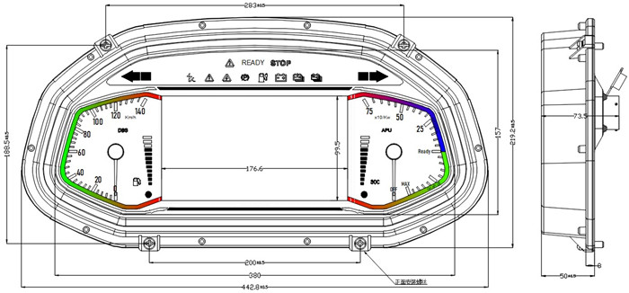 4 組合儀表的防護(hù)等級(jí)≮ IP54。