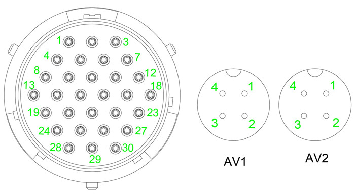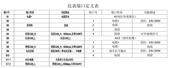 11 組合儀表后部航空接插件型號(hào)應(yīng)為:XCB30F30Z1D1,視頻接口插接器型號(hào)為GX12M-F-4。視頻接口為標(biāo)準(zhǔn)AV視頻接口。