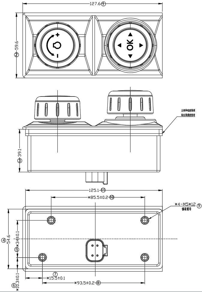 2.啟動檔位功能說明:啟動檔位可無限左右旋轉(zhuǎn)調(diào)檔,控制油門大小,每檔間隔15°,旋鈕力矩450±100gf.cm;按鍵整體按下“啟動車輛”,自恢復(fù)開關(guān);